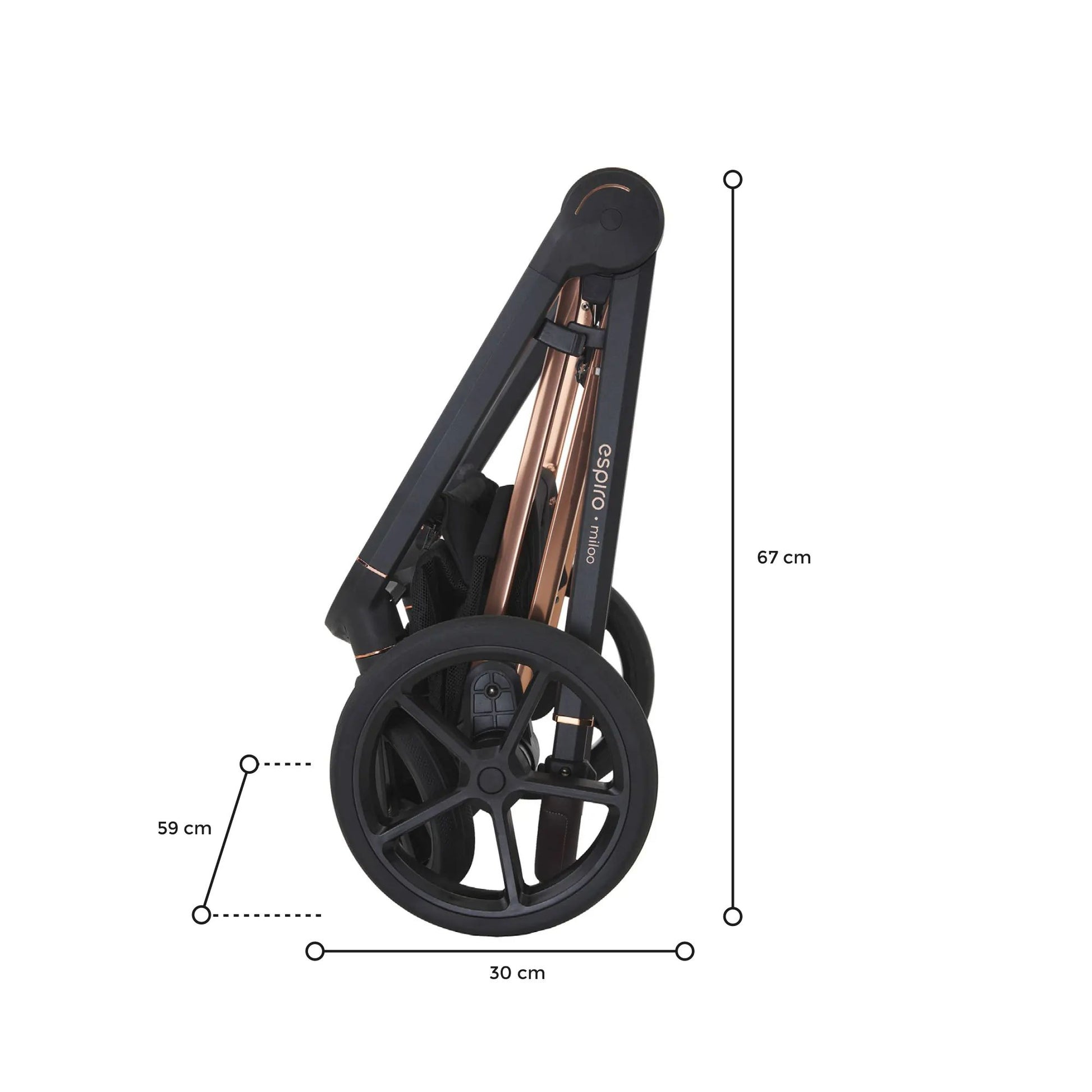 Strolling with your child in the espiro miloo stroller is a unique experience. The frame is mounted on wheels with specially designed treads, making the stroller glide smoothly and effortlessly. The ergonomic, telescopic handle covered in soft eco-leather adds to the comfort, and its height can be adjusted to suit your height, ensuring a perfect fit for every parent.