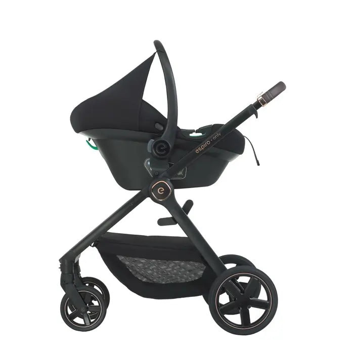 Also included is the espiro pi car seat, which provides maximum safety thanks to the 3-point harness and adjustable belt length, as well as exceptional comfort for your little one. The car seat is compatible with the pram, allowing the two elements to be easily connected, making it easy to move quickly from car to pram with your child.