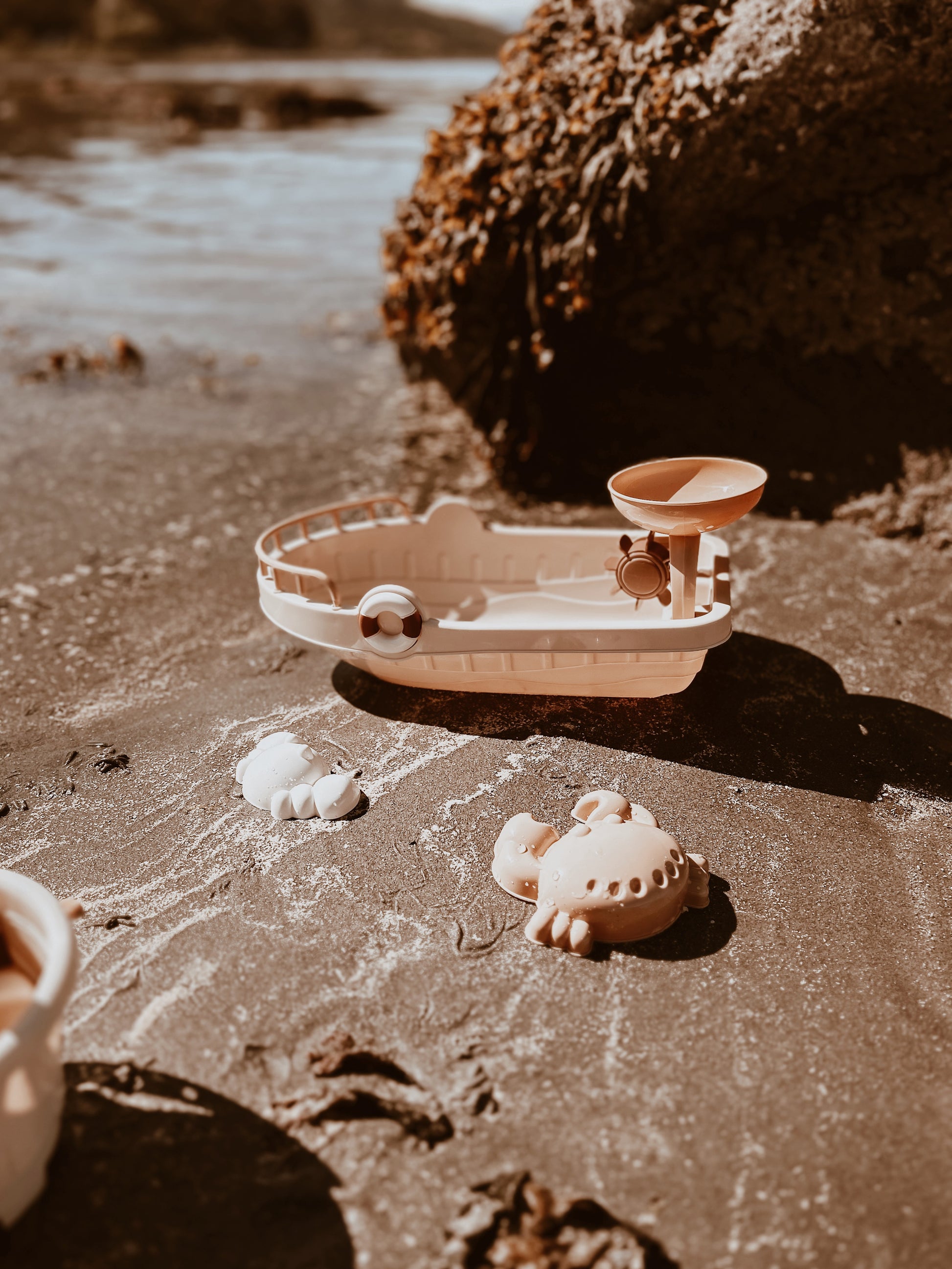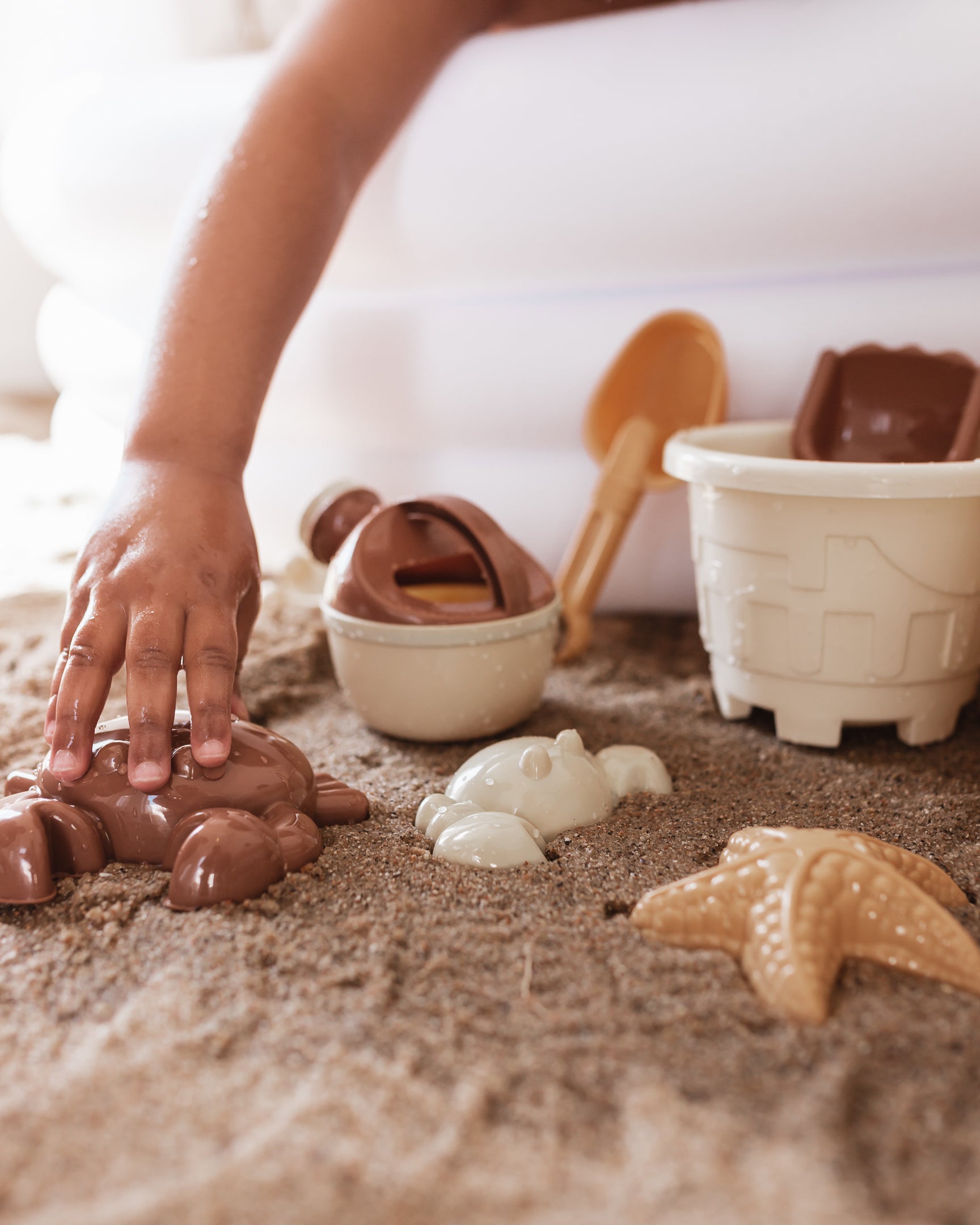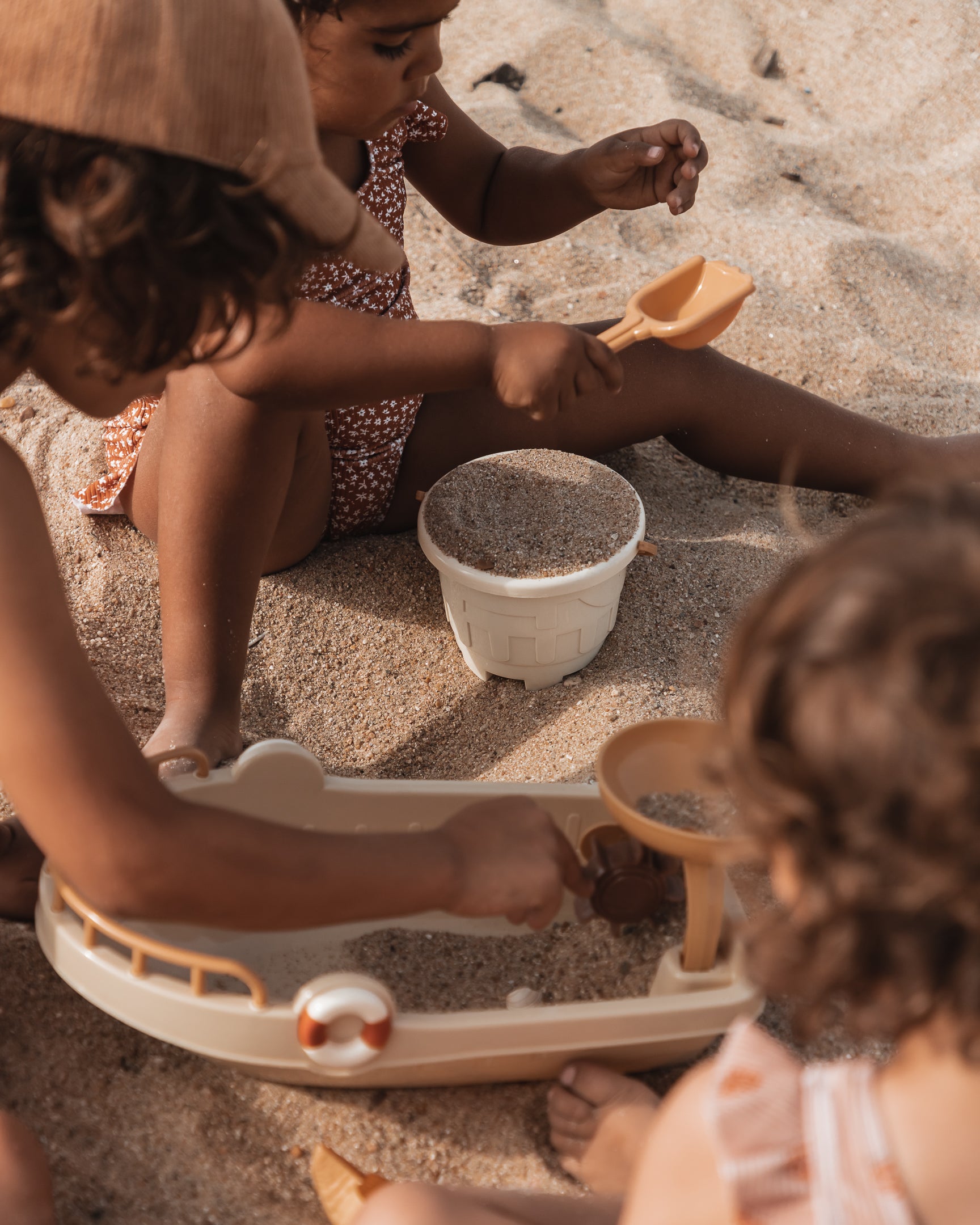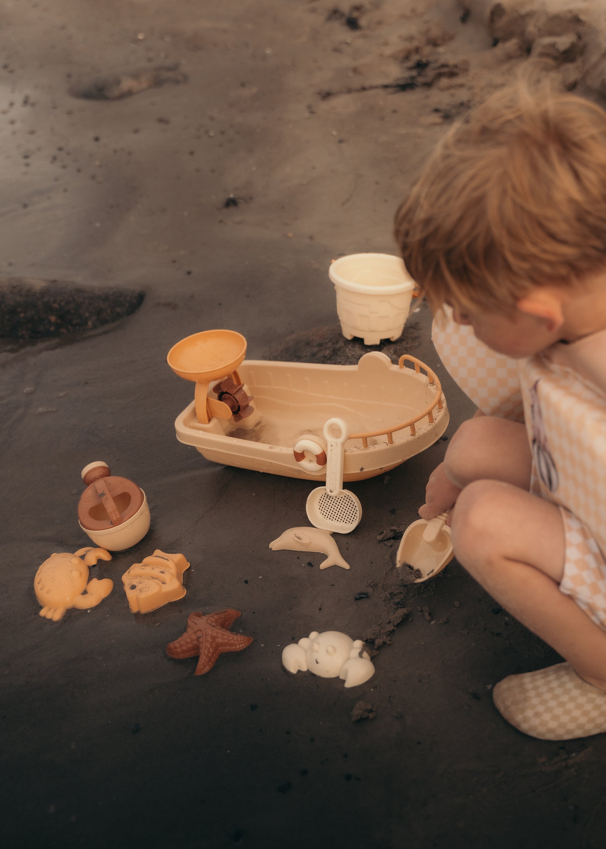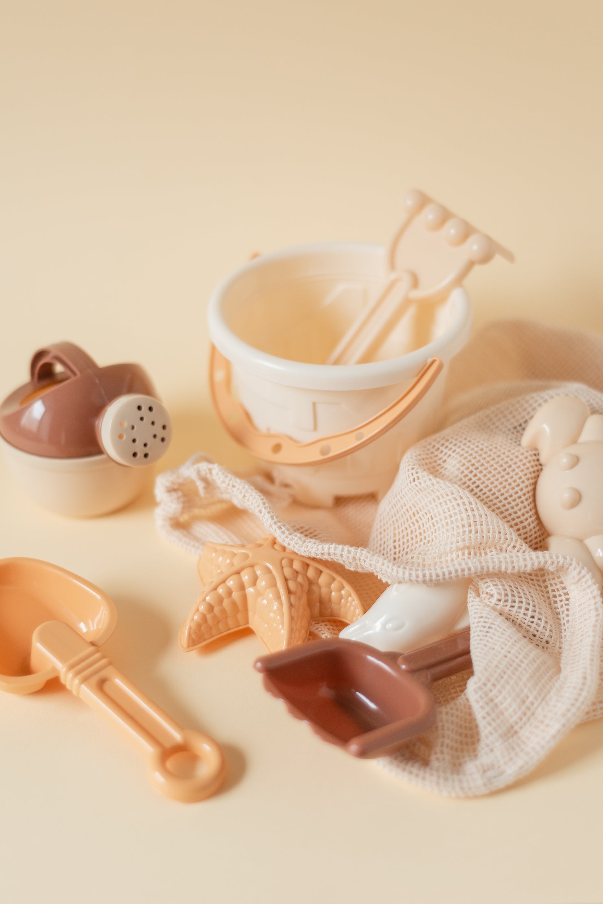 Seti ynë i lodrave të plazhit për verë që është veçanërisht për foshnjat dhe fëmijët, është bërë nga shishe të ricikluara dhe përbëhet nga 14 copa që do të jenë pjesë e aventurave imagjinare të të vegjëlve tuaj: 4 lopata, 6 kallëpe, 1 kanë uji, 1 kovë, 1 mulliri uji dhe 1 varkë.