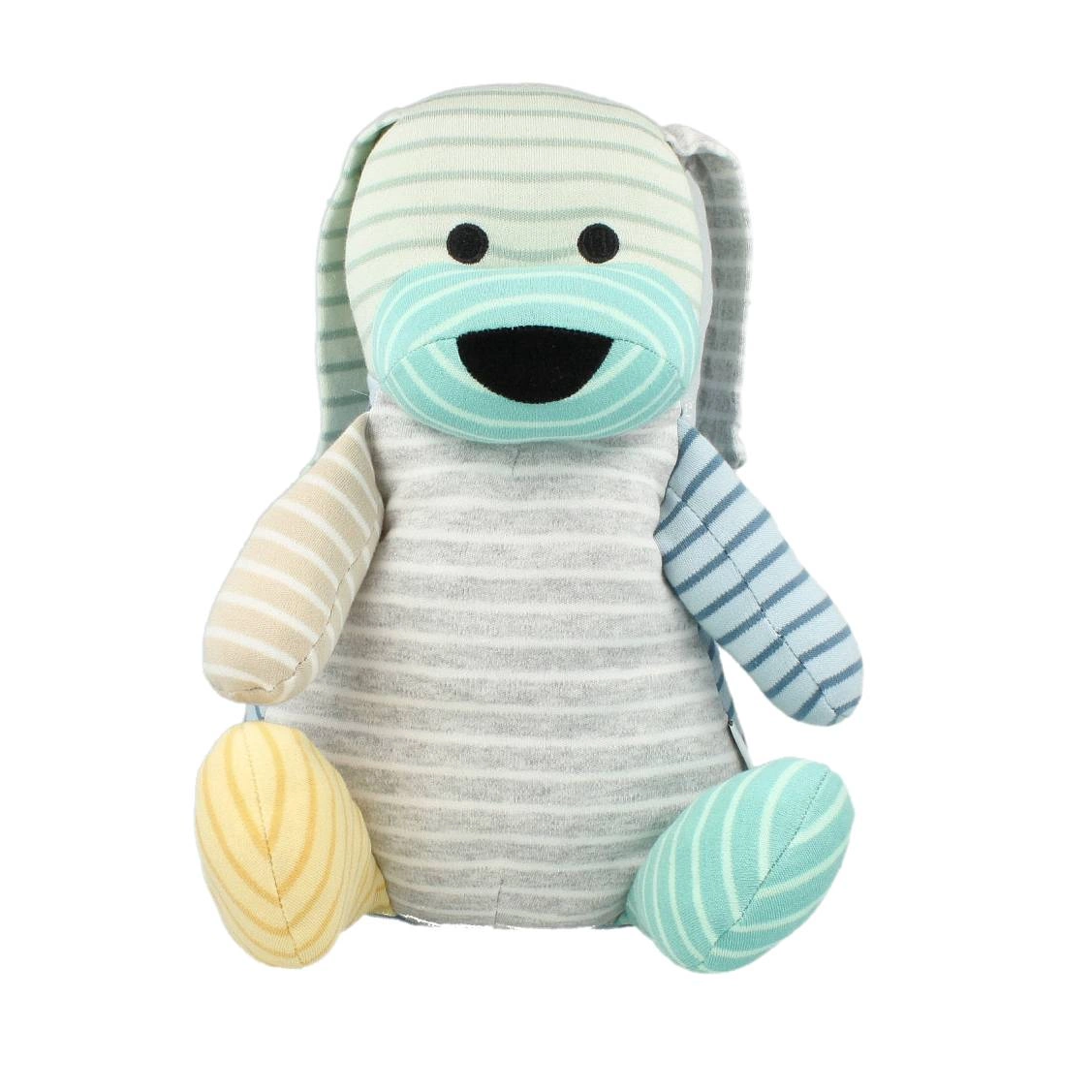 Maskota ricikluese Geggamoja, e qëndisur me copëza të mbetura nga prodhimi i veshjeve. Të gjitha specimenët janë unikë në përbërjen e ngjyrave. (Do të thotë që Doddi që porosisni mund të duket ndryshe nga fotografia)