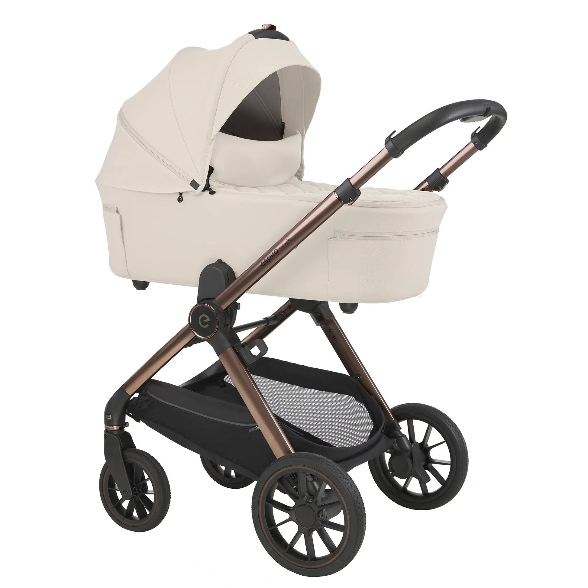 Espiro Code është zgjedhja ideale për prindërit që duan komoditet, funksionalitet dhe palosje të shpejtë. Sistemi 2-në-1 të lejon të kalosh lehtësisht nga kosh i rehatshëm për të porsalindur në sedilje karroce për fëmijë më të rritur. Koshi paloset plotësisht për ruajtje/transport, ndërsa karroca paloset automatikisht, duke kursyer kohë dhe hapësirë