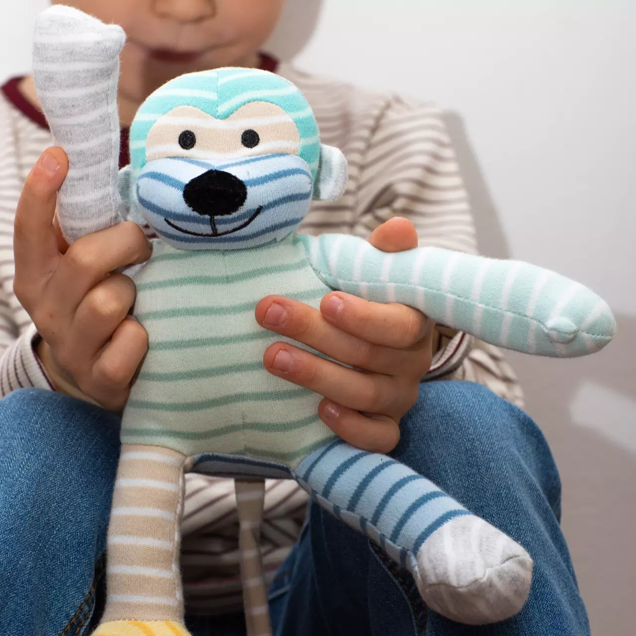 Geggamoja ka prodhuar prej kohësh produkte të ricikluara për fëmijë dhe të porsalindur – lodra të bëra nga materialet e mbetura nga koleksionet e mëparshme të veshjeve. Përmes kësaj mënyre të punës, ne minimizojmë mbetjet dhe kujdesemi më mirë për to. Në çdo prodhim, mbetjet e materialeve grumbullohen nga koleksionet e mëparshme, dhe prej tyre përzgjedhim copat e preferuara. Është fantastike të shohësh një produkt të ri të lindë nga ajo që është krijuar më parë – por mbi të gjitha, më e rëndësishmja – ne ndihmojmë në reduktimin e ndikimit tonë të përbashkët mbi mjedisin.