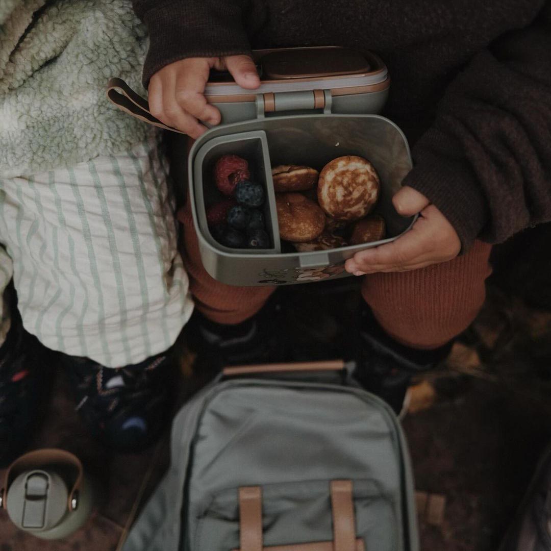 Kjo kuti e adhurueshme ka disa ndarje për të mbajtur ushqimet e ndryshme të ndara dhe të freskëta për një kohë të gjatë. Kapaku është i pajisur me një unazë silikoni të kategorisë ushqimore që e bën plotësisht hermetike dhe ndihmon në ruajtjen e freskisë së ushqimit apo snack-ut për më gjatë. Për lehtësi përdorimi, mund të lahet në lavastovilje dhe të ruhet në frigorifer/ngrirës. Përmasat janë të përshtatura në mënyrë ideale për t’u futur në një çantë shpine Elodie BackPack MINI, së bashku me shishen tonë prej çeliku inox për ujë. Materialet e përdorura janë 100% pa substanca të dëmshme si BPA apo ftalate. E përshtatshme për fëmijë nga 3 vjeç e lart.